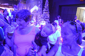 Anyway- of course Ryan and Patrick loved the show. Ryan sang and danced and Patrick clapped along. It was cute. After that we went on Toy Story, played in the Honey I Shrunk the Audience play ground, had snacks (another really great iced coffee), went on the Star Tours ride, and then headed to the Frozen Sing along. Ryan and I sang every song while I think the rest of our group took mini cat naps and enjoyed the cool auditorium. We were hoping to go see the Motor Cars show, but the timing wasn't going to work out... so we went to play in Olafs snow playground. And of course my very active boy wanted a few more minutes on the Honey I Shrunk the Kids playground before we left.